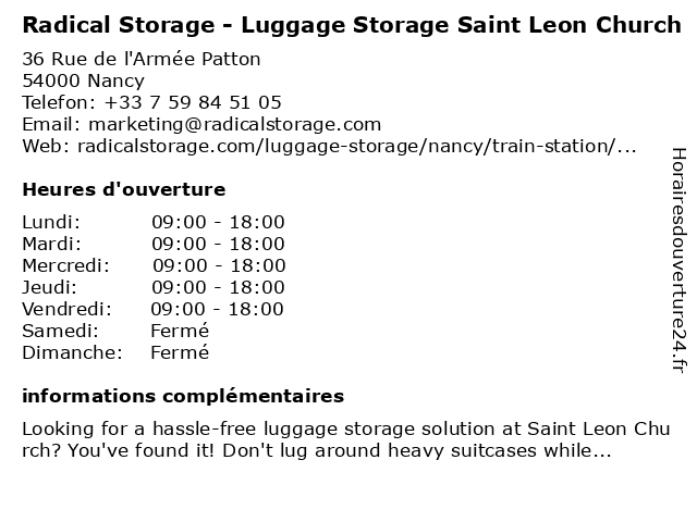 Termes de recherche pour Radical Storage - Luggage Storage Saint Leon Church:saint, leon, radical, luggage, storage, church, luggage storage, luggage storage near me |