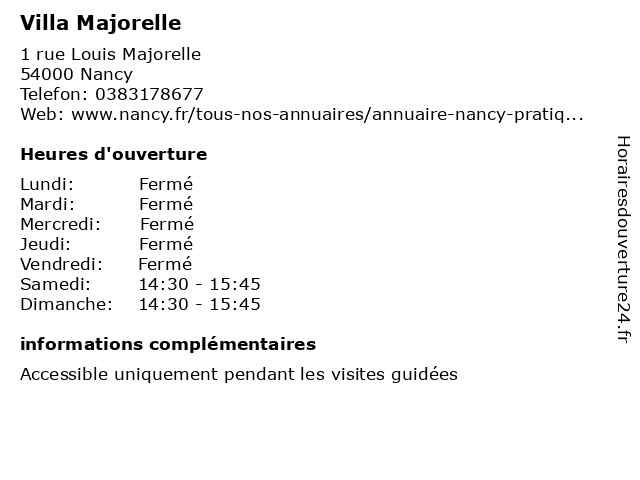 | Lundi | Fermé |
