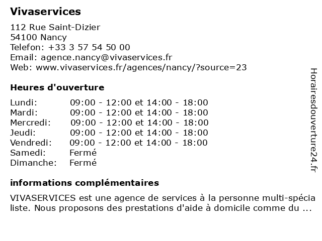 1 Vivaservices (Distance: 46,06 km)106 Rue de Pont-à-Mousson, 57950 Montigny-lès-Metz vivaservices