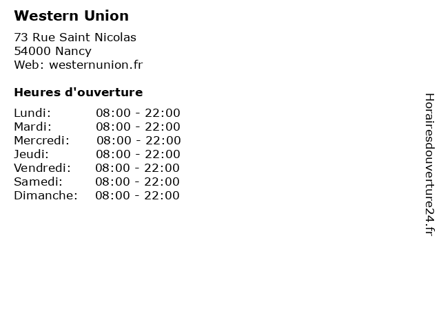 1 Western Union (Distance: 0,32 km) 66 Rue Saint Dizier, 54000 Nancy centre de remmittance, l'argent, transfert d'argent, union, western 2 Western Union (Distance: 0,56 km) 8 Rue Pierre Fourier, 54039 Nancy centre de remmittance, l'argent, transfert d'argent, union, western 3 Western Union (Distance: 0,72 km) 2 Quai De La Bataille, 54000 Nancy centre de remmittance, l'argent, transfert d'argent, union, western 4 Western Union (Distance: 0,75 km) 65 Rue Pierre Semard, 54000 Nancy centre de remmittance, l'argent, transfert d'argent, union, western 5 Western Union (Distance: 0,97 km) 19 Rue Serre, 54000 Nancy centre de remmittance, l'argent, transfert d'argent, union, western 6 Western Union (Distance: 1,14 km) n/a Parc De La, 54054 Nancy centre de remmittance, l'argent, transfert d'argent, union, western |