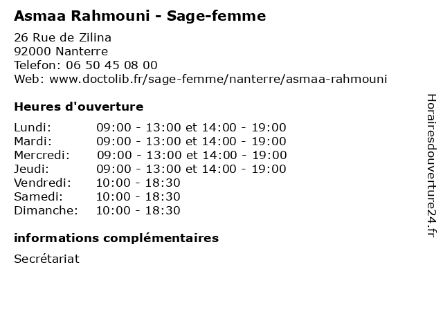 | Lundi | 09:00-13:00 et 14:00-19:00 |