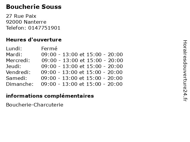 | Samedi | 09:00-13:00 et 15:00-20:00 |