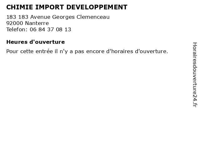 | Appeler CHIMIE IMPORT DEVELOPPEMENT | |