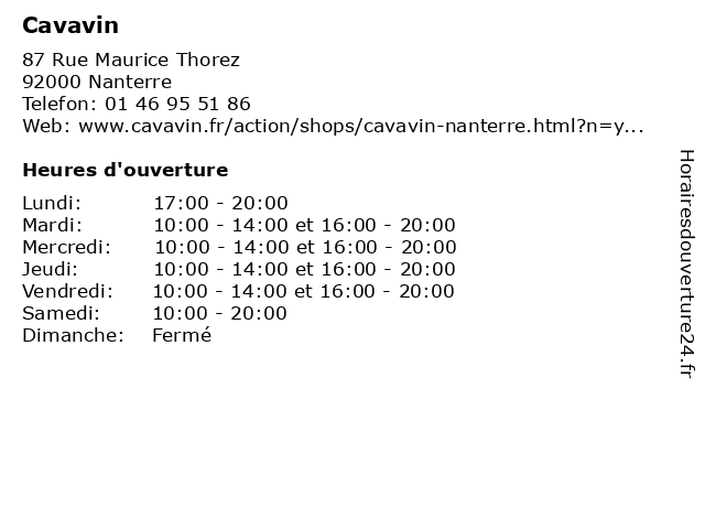| Mercredi | 10:00-14:00 et 16:00-20:00 |
