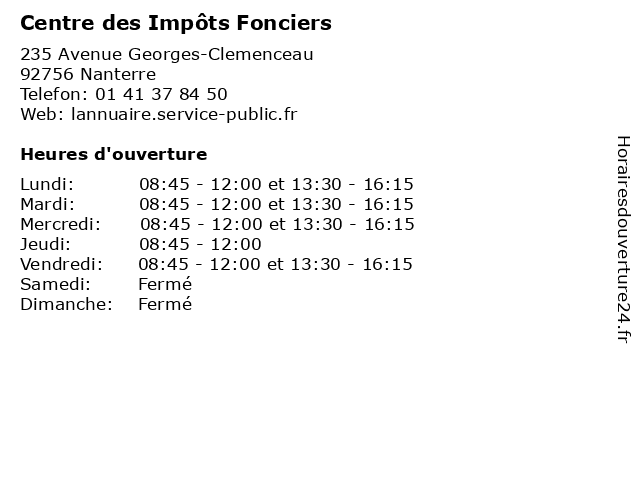 Termes de recherche pour Centre des Impôts Fonciers:de, nanterre, des, administration, services, centre, impôts, services publics, assoc, foncier, fonciers |