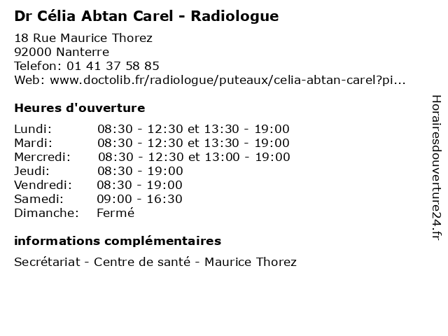 | Lundi | 08:30-12:30 et 13:30-19:00 |