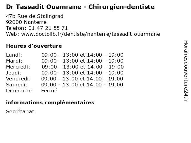 | Lundi | 09:00-13:00 et 14:00-19:00 |