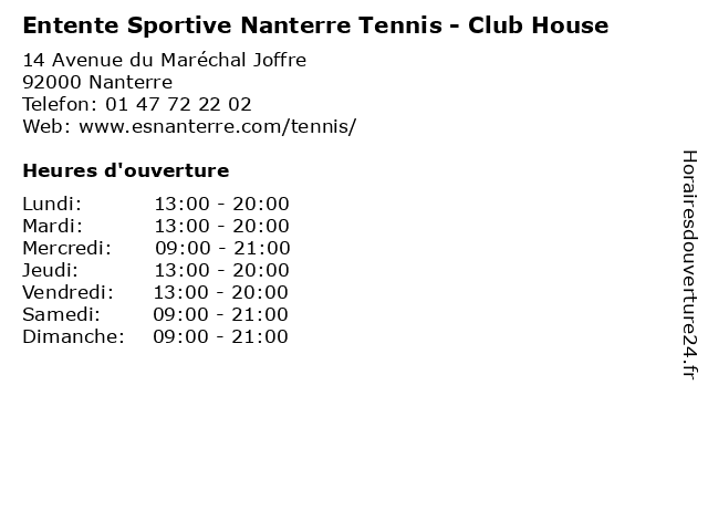 Termes de recherche pour Entente Sportive Nanterre Tennis - Club House:du, nanterre, d'ouverture, horaires, club, house, ecole, tennis, sportive, entente, equipes |