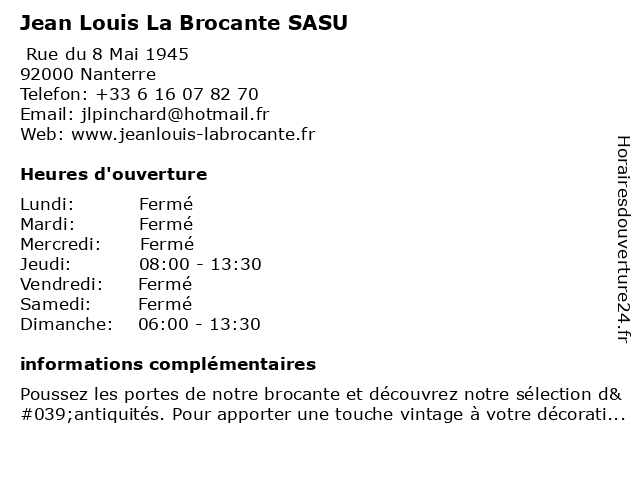 Termes de recherche pour Jean Louis La Brocante SASU:la, jean, louis, brocante, sasu |