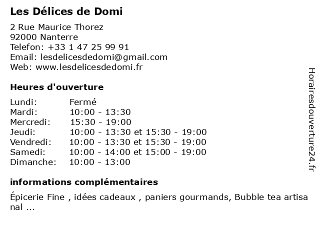 | Samedi | 10:00-14:00 et 15:00-19:00 |