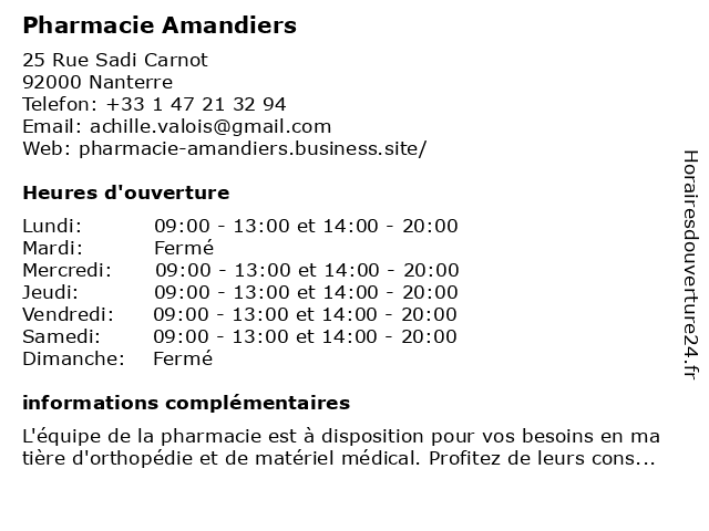 | Lundi | 09:00-13:00 et 14:00-20:00 |