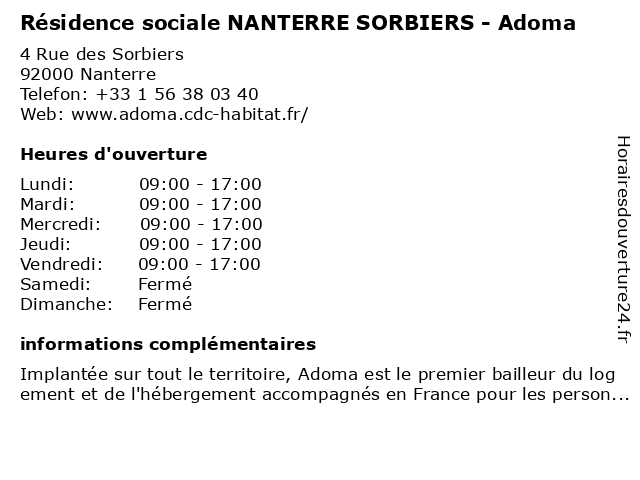 Termes de recherche pour Résidence sociale NANTERRE SORBIERS - Adoma:nanterre, résidence, sorbiers, sociale, adoma |