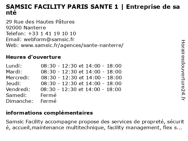 | Lundi | 08:30-12:30 et 14:00-18:00 |