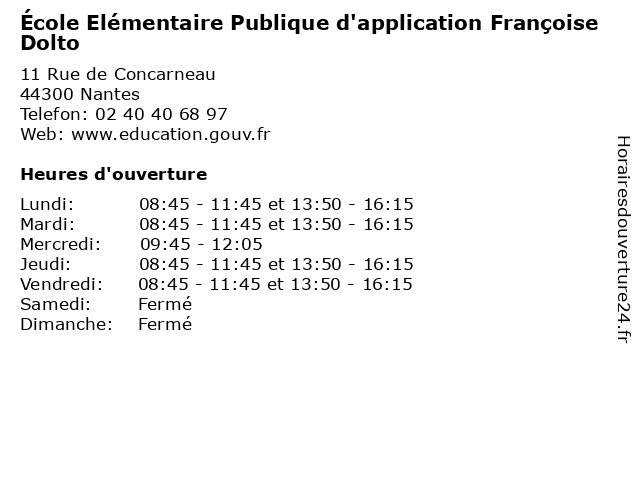 | Lundi | 08:45-11:45 et 13:50-16:15 |