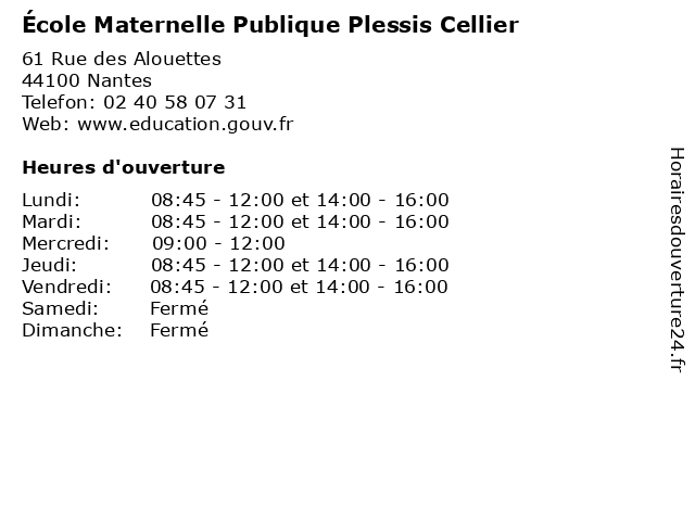 | Lundi | 08:45-12:00 et 14:00-16:00 |