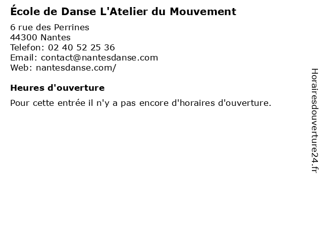 | Appeler École de Danse L'Atelier du Mouvement | |