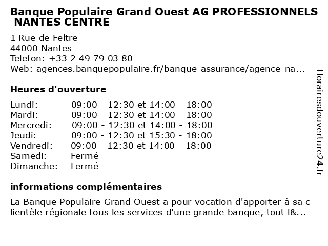 Termes de recherche pour Banque Populaire Grand Ouest AG PROFESSIONNELS NANTES CENTRE:grand, nantes, centre, ouest, banque, populaire, ag, professionnels |