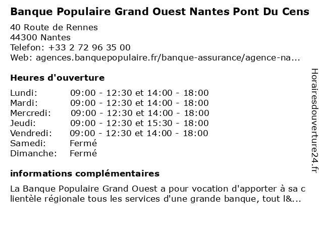 Termes de recherche pour Banque Populaire Grand Ouest Nantes Pont Du Cens:du, grand, nantes, pont, ouest, banque, populaire, cens |