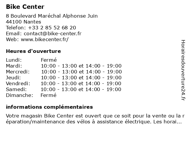 | Samedi | 10:00-13:00 et 14:00-19:00 |