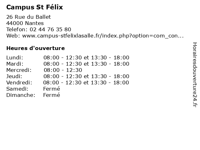 | Lundi | 08:00-12:30 et 13:30-18:00 |