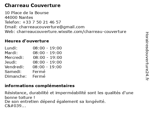 1 LMT Couverture (Distance: 0,77 km) 5 rue le Nôtre, 44000 Nantes couverture, couvertures, entretien, lmt, rénovation, toits 3 GLEN Couverture (Distance: 1,54 km) 12 Cour des Automates, 44000 Nantes bardage, charpente, couverture, entretien toitures, glen, isolation extérieur, pose de velux, zinguerie 4 AJC Couverture (Distance: 1,87 km) 144 Rue Paul Bellamy, 44000 Nantes ajc, aluminium, bois, charpente, couverture, façade, rénovation, toiture, zinguerie 5 Lewinski Couverture (Distance: 4,59 km) 30 Bis Boulevard de la Chauvinière, 44300 Nantes couverture, lewinski 6 Roger couverture Nant est entreprise (Distance: 6,50 km) 10 Rue Allemagne, 44300 Nantes couverture, entreprise, est, nant, roger |