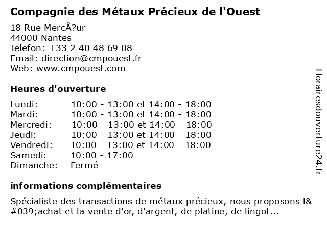 | Mercredi | 10:00-13:00 et 14:00-18:00 |