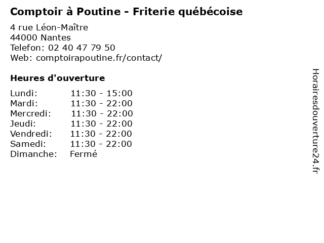 Termes de recherche pour Comptoir à Poutine - Friterie québécoise:restaurant, brasserie, boisson, comptoir, snacking, friterie, restauraton, quebecoise, poutine |