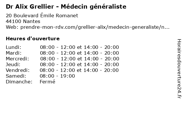 | Mercredi | 08:00-12:00 et 14:00-20:00 |