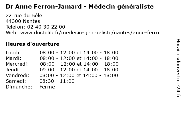 | Lundi | 08:00-12:00 et 14:00-18:00 |
