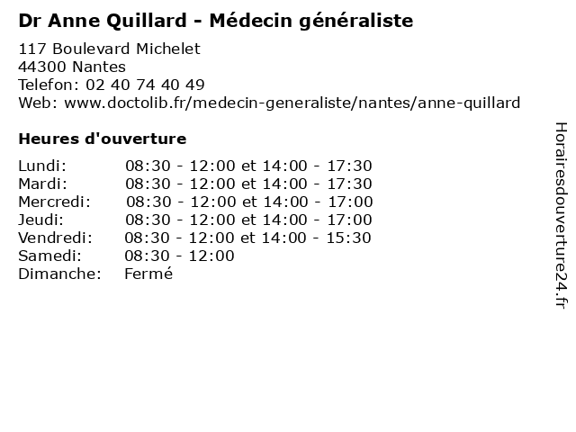 | Lundi | 08:30-12:00 et 14:00-17:30 |