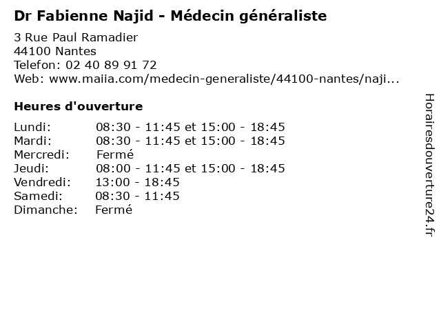 | Lundi | 08:30-11:45 et 15:00-18:45 |