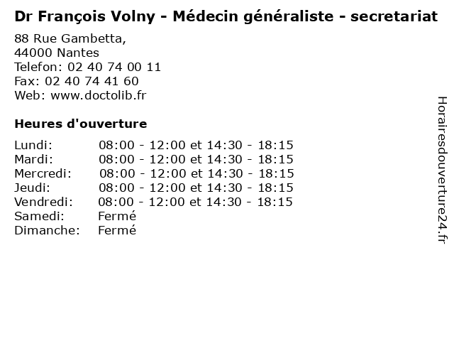 | Lundi | 08:00-12:00 et 14:30-18:15 |