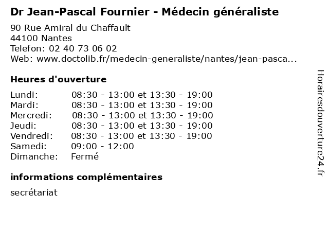 | Jeudi | 08:30-13:00 et 13:30-19:00 |