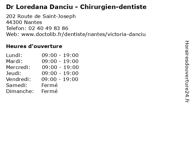1 Dr. Valentin Chiruc - Chirurgien-dentiste (Distance: 0,02 km) 202 Route de Saint Joseph, 44300 Nantes chiruc, chirurgien, dentiste, docteur, dr., medecins, sante, valentin 2 Pharmacie du Ranzay (Distance: 0,04 km) 194 Route de Saint-Joseph, 44300 Nantes aromatherapie, du, médical, médicaments, paramédical, parapharmacie, pharmacie, ranzay, santé, traitements 3 Dr Céline Grimshaw - Médecin généraliste (Distance: 0,25 km) 8 Rue Hermann Geiger, 44300 Nantes céline, dr, grimshaw, généraliste, médecin, médecine, médical, pharmaceutique, traitement 4 Laboratoire de la Haluchère (Distance: 0,61 km) 214 bis Boulevard Jules Verne, 44300 Nantes de, haluchère, la, laboratoire, laboratoire d'analyses de biologie médical, prise de sang 5 Dr Stéphane Pasquier - Chirurgien-dentiste (Distance: 0,65 km) 218 Boulevard Jules Verne, 44300 Nantes chirurgie, chirurgien, dentaire, dentiste, dr, pasquier, stéphane 6 Dr Véronique Marette - Chirurgien-dentiste (Distance: 0,65 km) 218 Boulevard Jules Verne, 44300 Nantes chirurgie, chirurgien, dentaire, dentiste, dr, marette, véronique |
