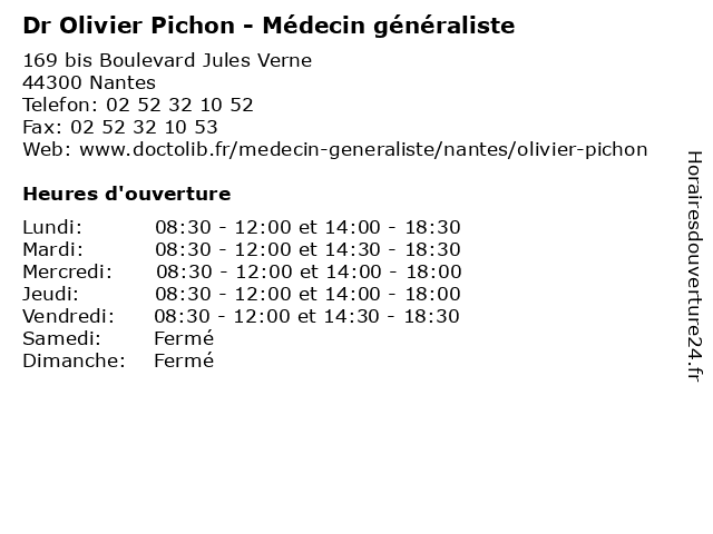 1 Dr Olivier Fauchot - Gastro-entérologue et hépatologue (Distance: 0,66 km) 2 Route de Paris, 44300 Nantes dr, enterelogue, entérologue, et, fauchot, gastro, hepatolgue, hépatologue, olivier, soins 2 Dr Olivier Perrouin - Anesthesiste (Distance: 0,67 km) 2-4 Route de Paris, 44300 Nantes anesthesiste, consultation, docteur, dr, med, médecin, médecine, olivier, perrouin, traitement 3 Dr Olivier Meillard - Angiologue - secrétariat (Distance: 0,81 km) 49 Rue Jules Grandjouan, 44300 Nantes angiologue, consultation, docteur, dr, med, meillard, médecin, médecine, olivier, secrétariat, traitement 6 ÉMOM - École de Musique Olivier Messiaen (Distance: 2,81 km) 63 Rue de la Perverie, 44300 Nantes de, messiaen, musique, nantes, olivier, vocal, école, émom |