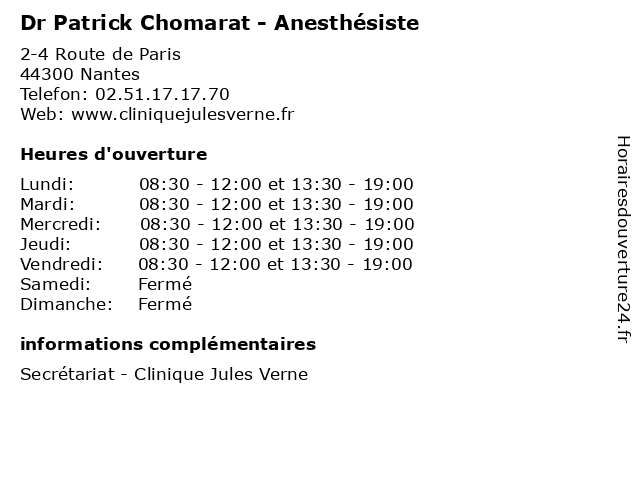 | Lundi | 08:30-12:00 et 13:30-19:00 |