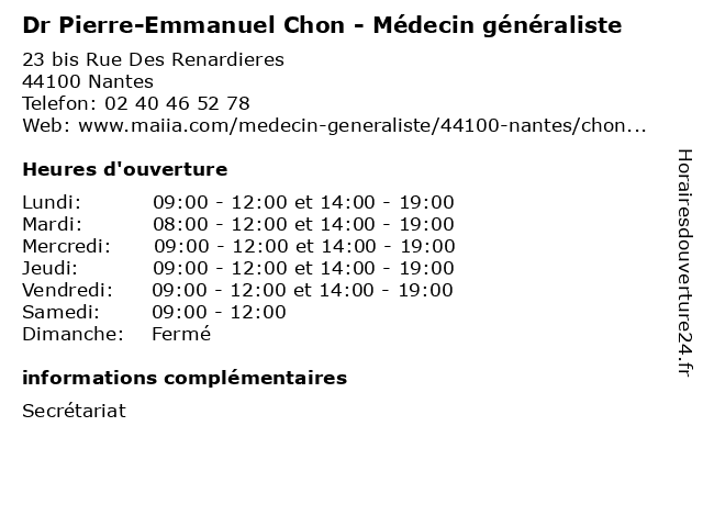 | Lundi | 09:00-12:00 et 14:00-19:00 |