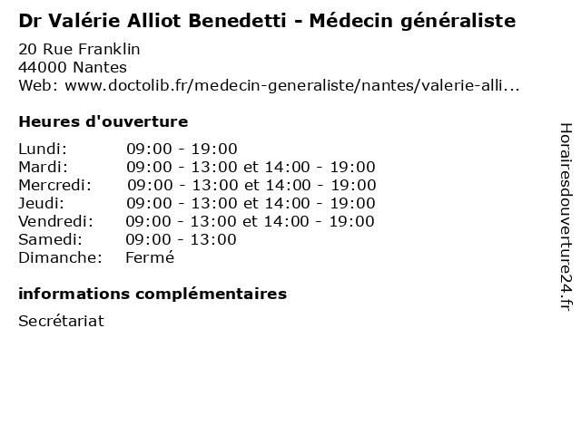 | Jeudi | 09:00-13:00 et 14:00-19:00 |