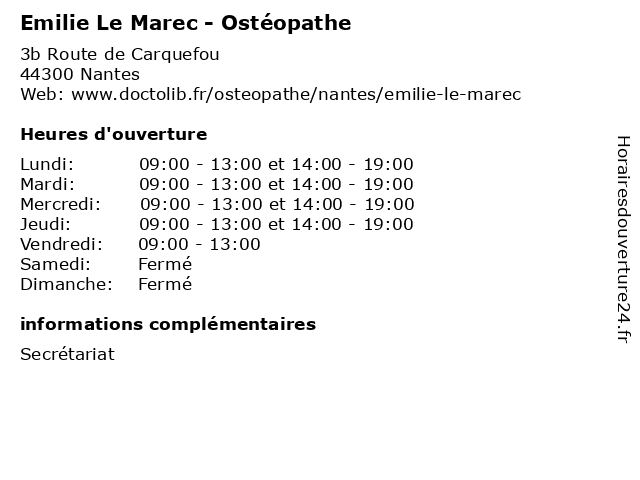 | Lundi | 09:00-13:00 et 14:00-19:00 |