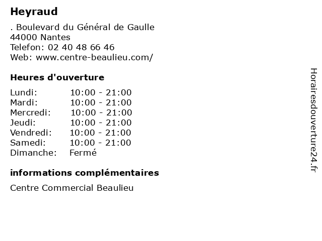 | Jeudi | 10:00-21:00 |