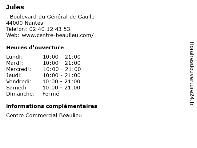 | Jeudi | 10:00-21:00 |