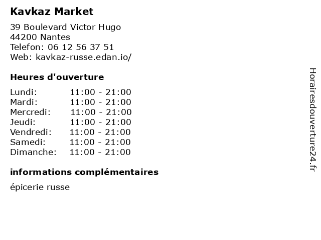 | Samedi | 11:00-21:00 |