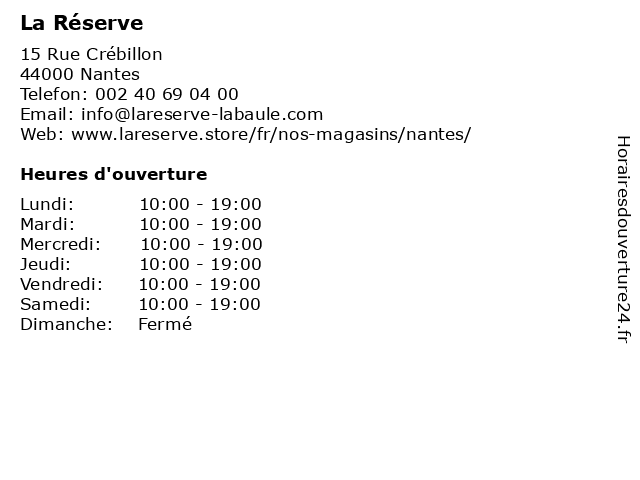 | Lundi | 10:00-19:00 |