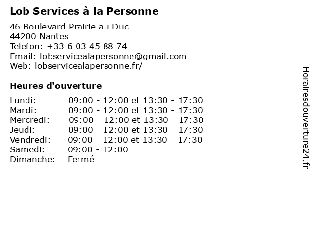 | Lundi | 09:00-12:00 et 13:30-17:30 |