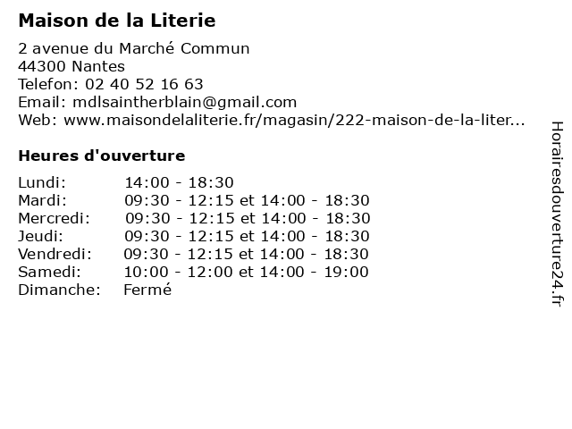| Mardi | 09:30-12:15 et 14:00-18:30 |