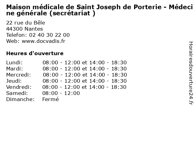 Termes de recherche pour Maison médicale de Saint Joseph de Porterie - Médecine générale (secrétariat ):de, saint, médicale, maison, générale, medecine, santé, joseph, secretariat, docteur, consultation, porterie |