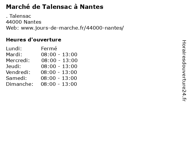 | Vendredi | 08:00-13:00 |