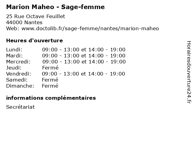| Mardi | 09:00-13:00 et 14:00-19:00 |