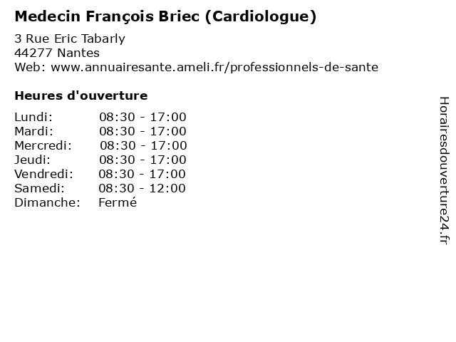 | Lundi | 08:30-17:00 |