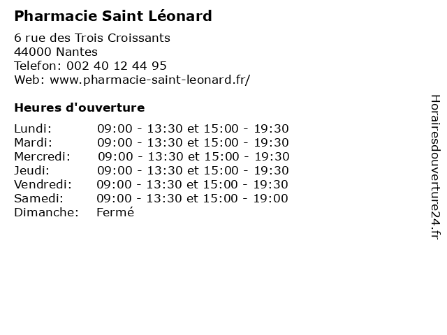 | Samedi | 09:00-13:30 et 15:00-19:00 |